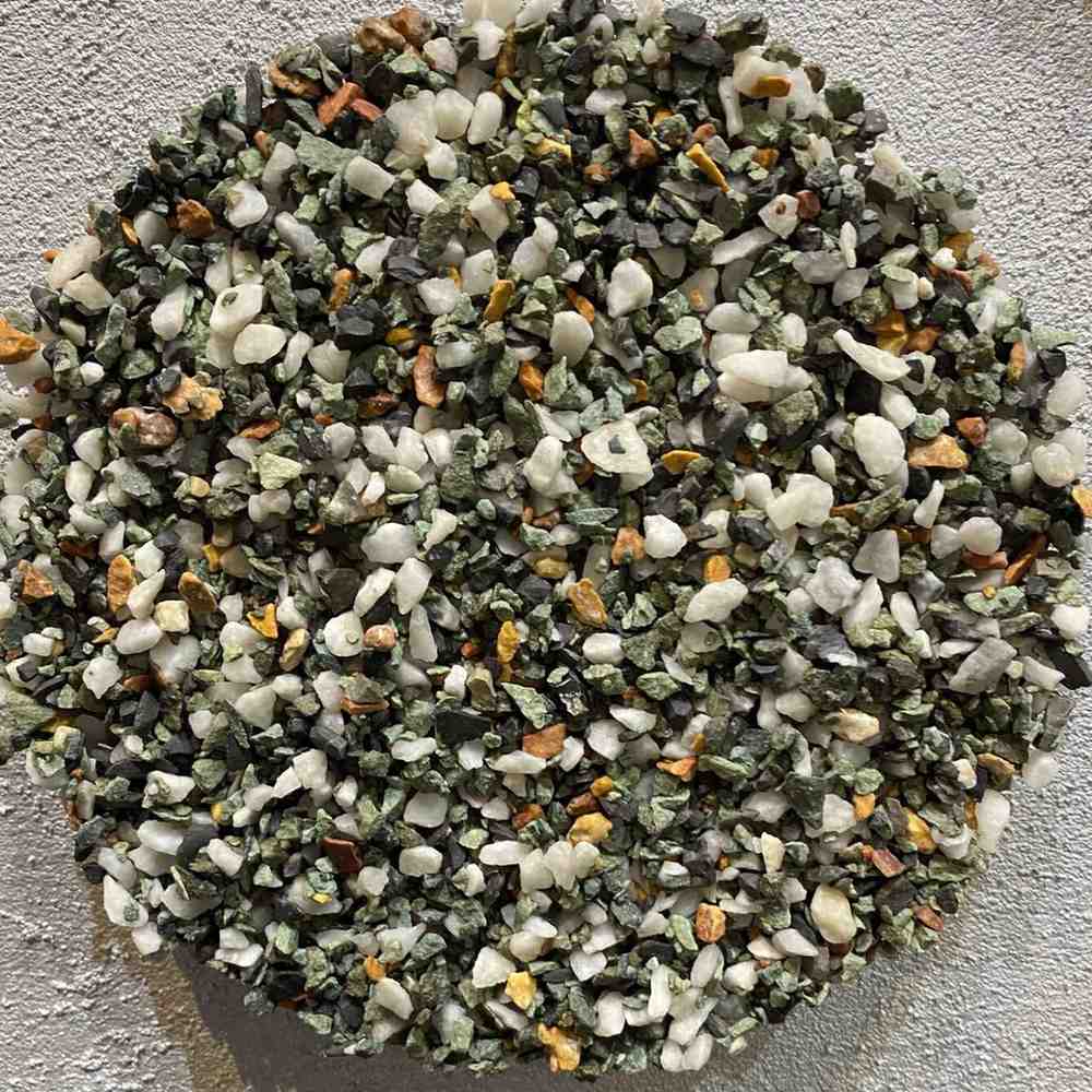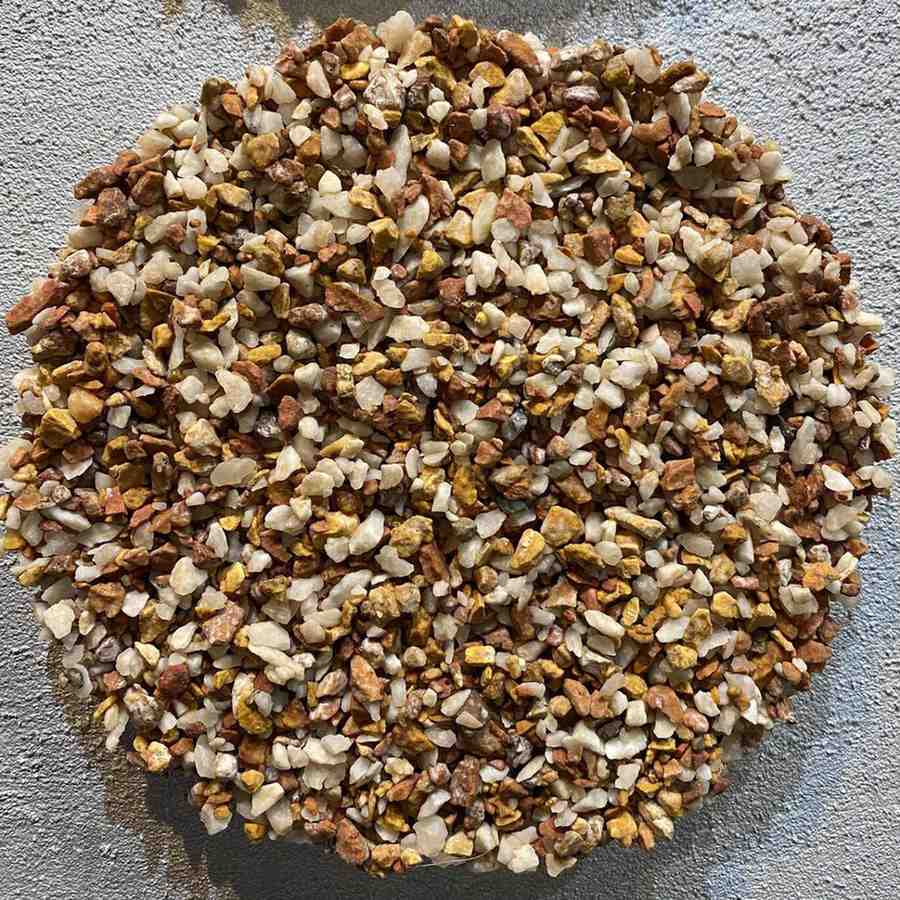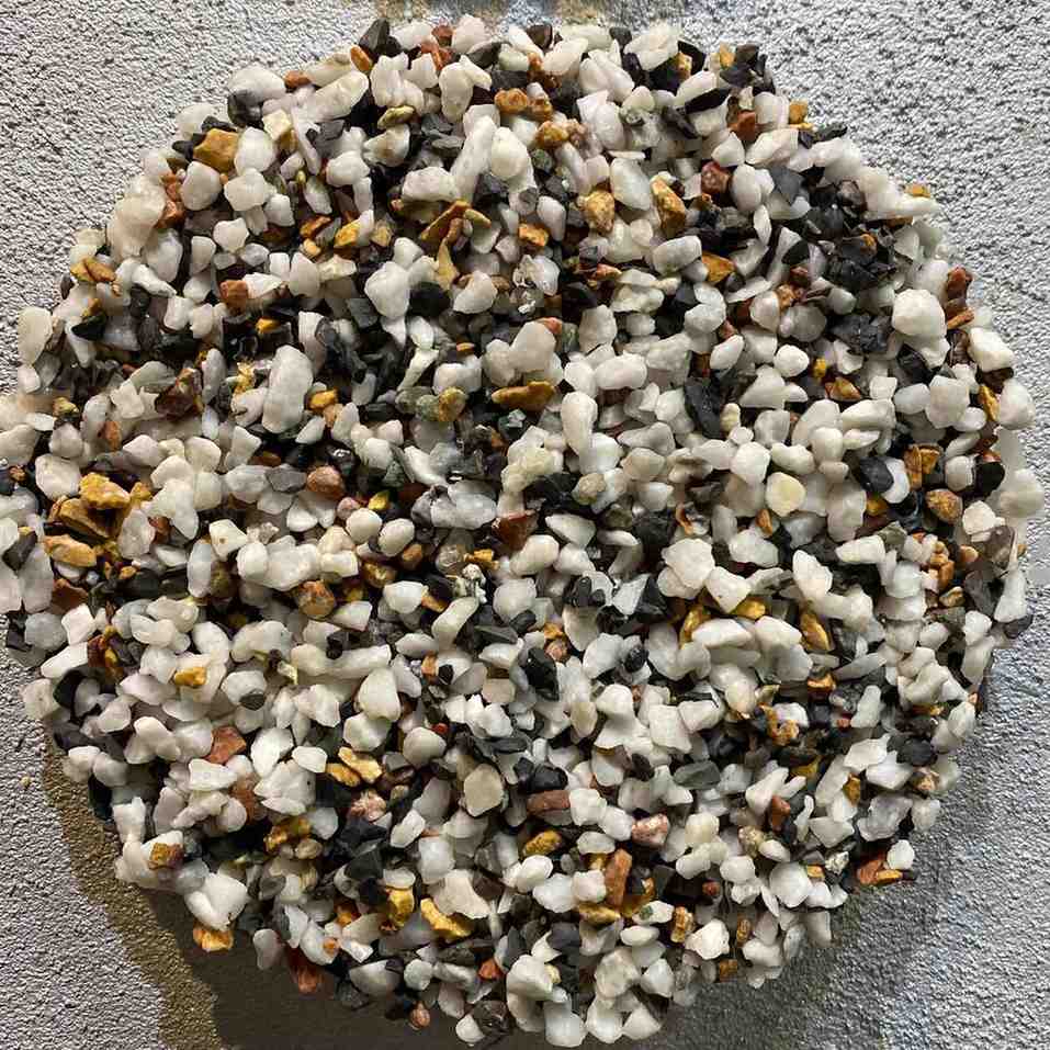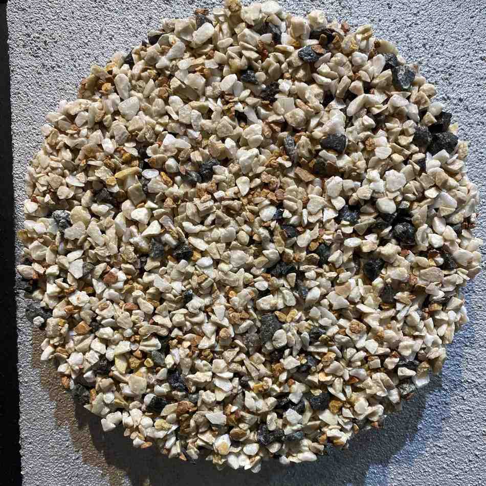 1سنگدانهها : این سنگ ها قلب تپنده و عامل زیبایی استون کارپت هستند. معمولاً از سنگهای طبیعی مانند کوارتز رنگی، مرمر، گرانیت یا سنگریزههای رودخانهای شسته و خشک شده استفاده میشود. این سنگدانهها در اندازههای مختلف (معمولاً بین ۲ تا ۸ میلیمتر) و در طیف رنگی بیپایانی موجودند.